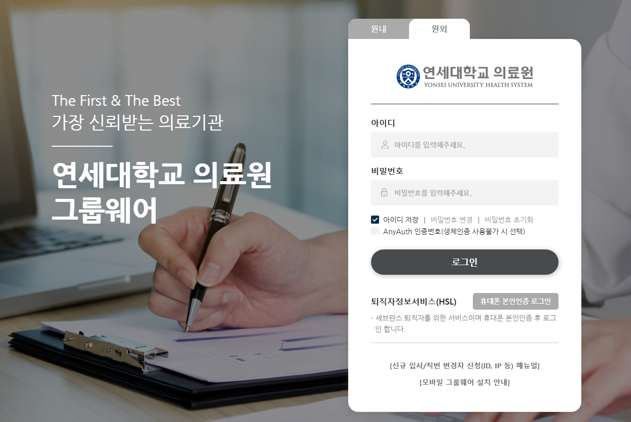 연세의료원 그룹웨어 원외 시스템은 https://plaza.yuhs.ac/index.jsp를 통해 접속할 수 있습니다. 이 시스템은 연세의료원 소속의 원외 교직원을 위한 업무 협업을 지원하며, 원내 그룹웨어와 함께 운영되고 있습니다.
