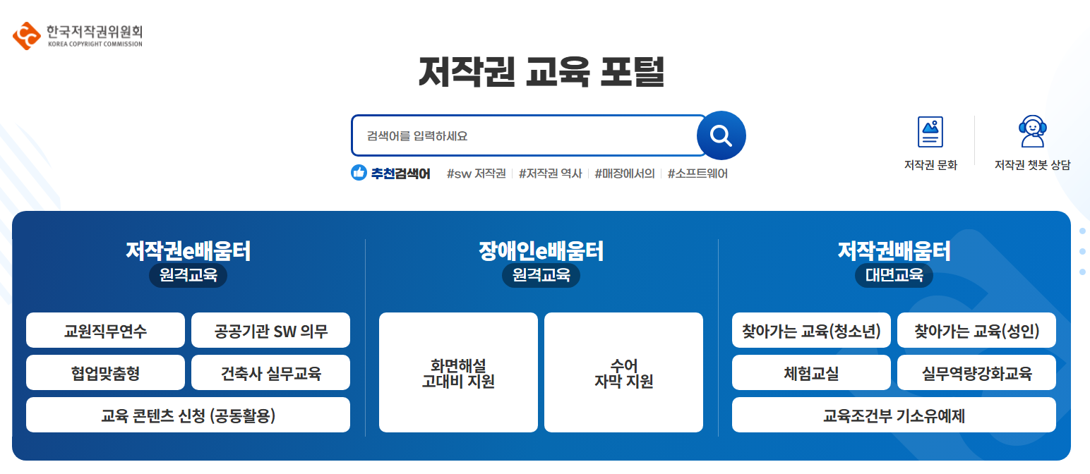 - 공무원 과정: 공공기관 업무에 필요한 저작권 지식