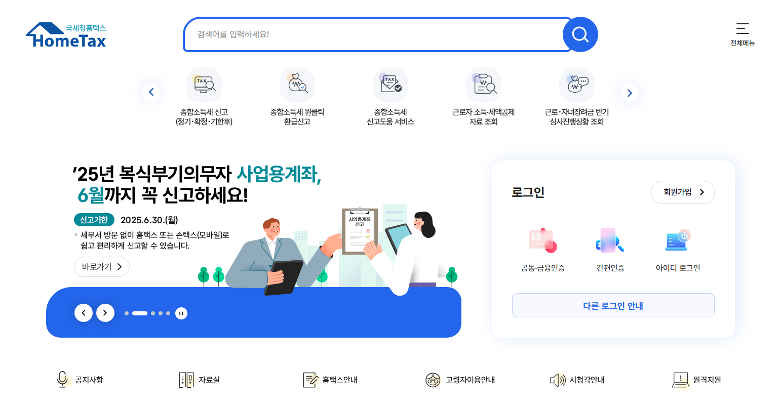 국세청은 홈택스 고도화 사업을 통해 2025년 1월부터 홈택스를 전면 개편했습니다. 홈택스 고도화 사업 핵심은 사용자(납부자) 중심 시스템 구현으로, 납세자가 더욱 쉽고 정확하게 세무 업무를 처리할 수 있도록 개선되었습니다.