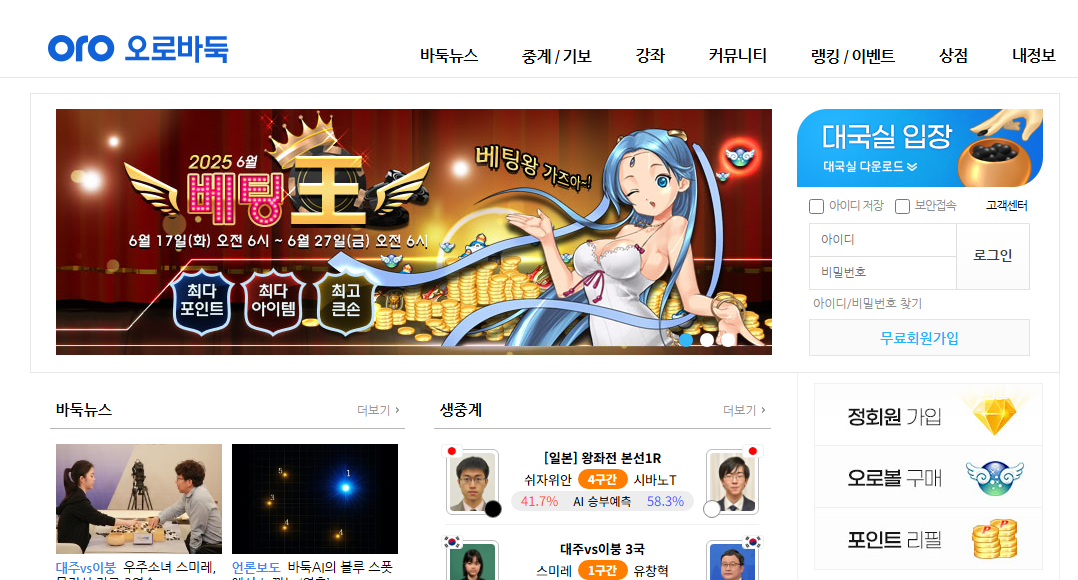 - 바둑 강좌, AI 해설, 오로바둑 TV 등 다양한 학습 자료