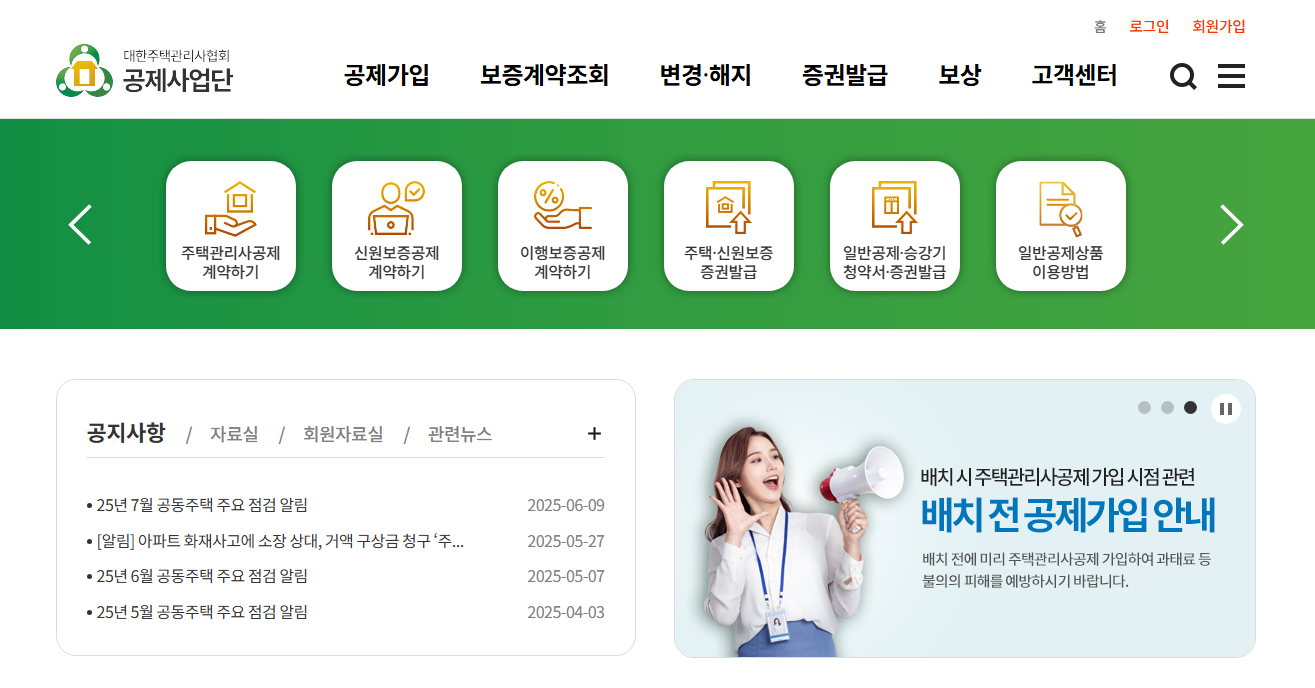 공제사업단은 공동주택관리 전문 공제 서비스를 제공하여 관리업무 관련자들이 안심하고 업무를 수행할 수 있도록 지원합니다. 24시간 언제 어디서나 편리한 인터넷 공제계약이 가능하며, 주택공제 계약 시 번거로운 구비서류가 불필요합니다.
