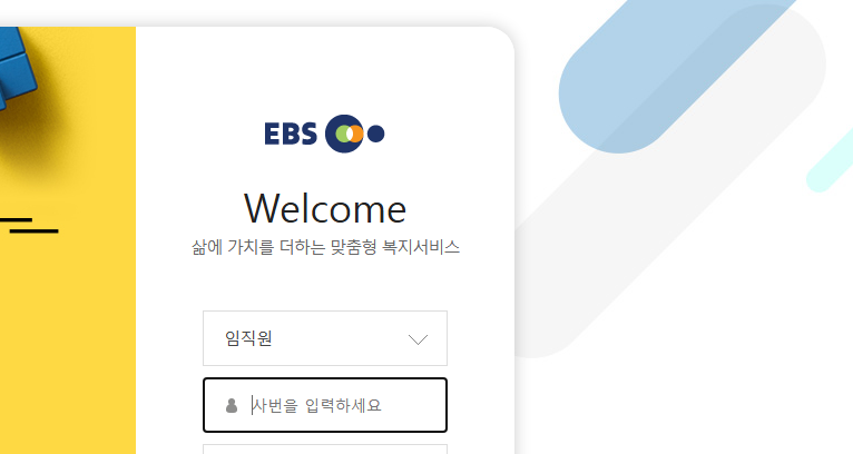 EBS 복지몰 이지웰 홈페이지 주소는 ebs.ezwel.com입니다. 이 사이트는 로그인 후 이용이 가능하며, 첫 방문 시에는 소속 담당자에게 아이디와 비밀번호를 부여받아야 접속할 수 있습니다.