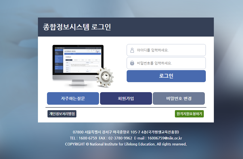 문해교육 종합정보시스템 홈페이지