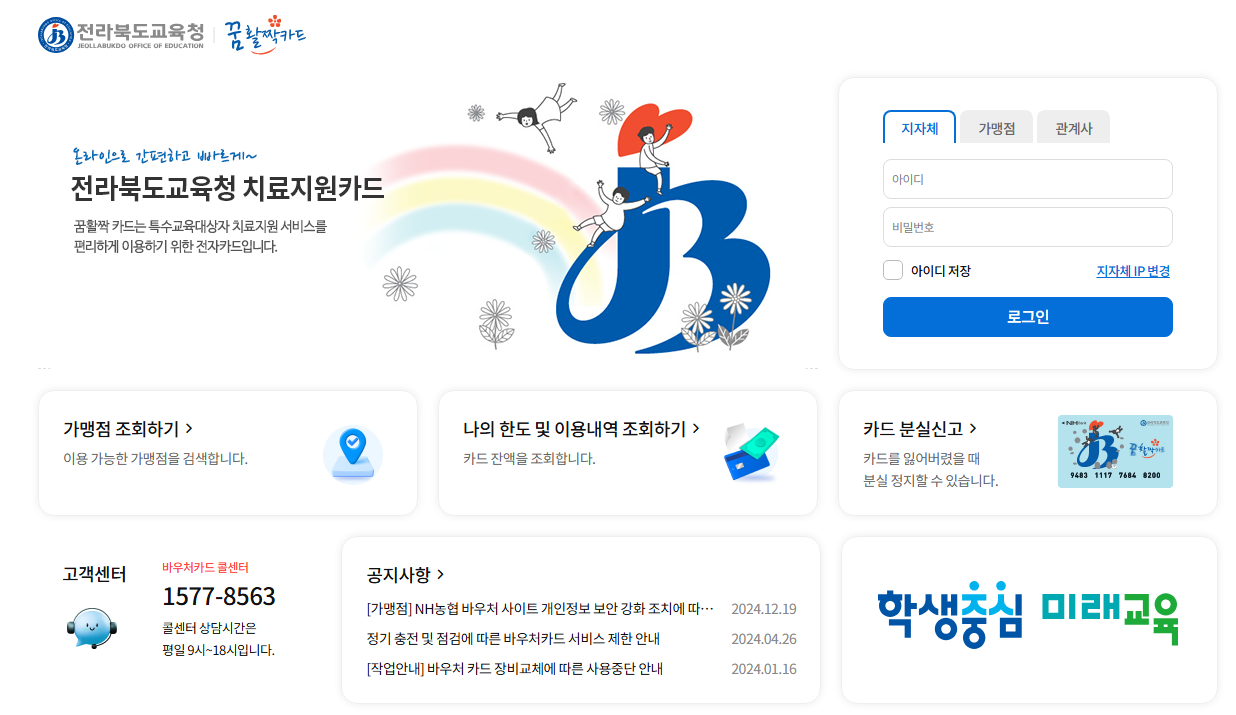 더 자세한 정보는 전라북도교육청 치료지원카드 홈페이지에서 확인할 수 있습니다.