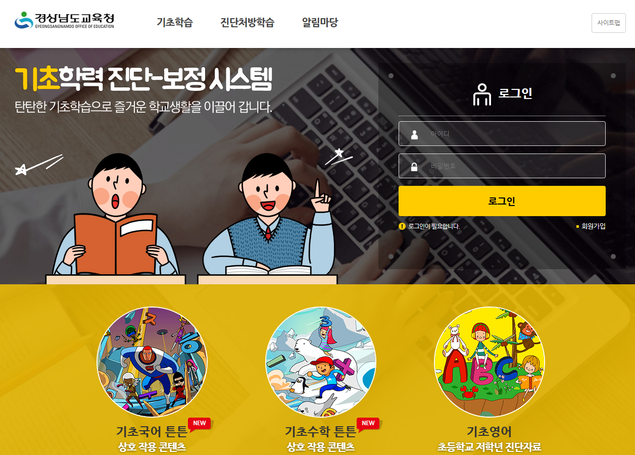 경남교육청 기초학력 진단보정 시스템은 경남 지역 학생들이 사용하는 미래교육플랫폼 '아이톡톡'과 연동되어 있어 별도의 회원가입 없이 쉽게 접근할 수 있습니다. 학생들은 기존 아이톡톡 계정으로 바로 로그인하여 시스템을 이용할 수 있습니다.