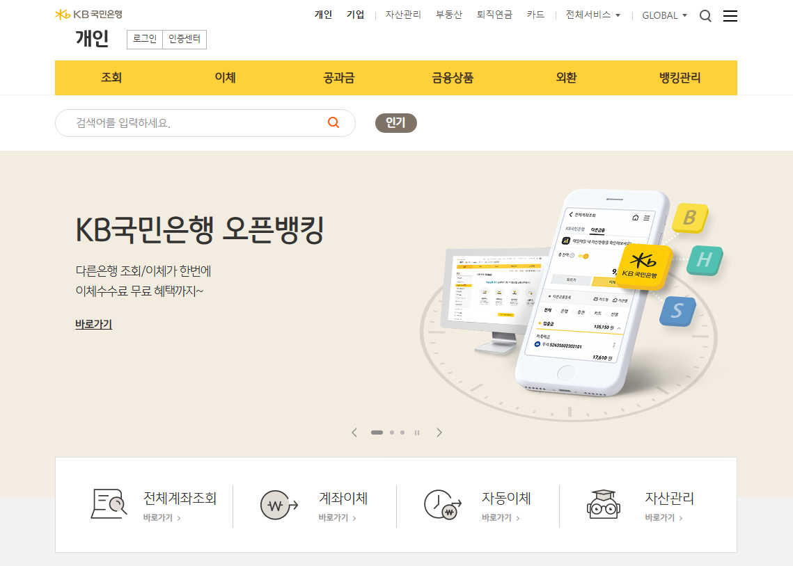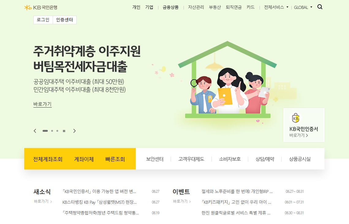 국민은행 홈페이지 주요 서비스