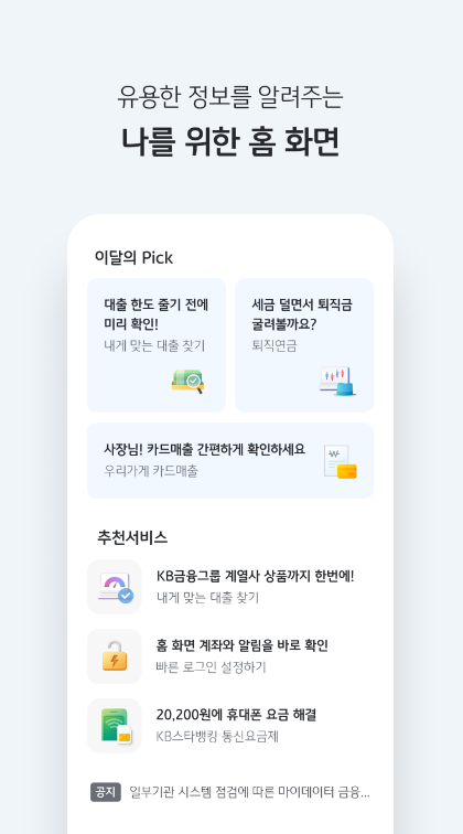 나를 위한 쉽고 편한 생활금융플랫폼, KB스타뱅킹을 이용해보세요