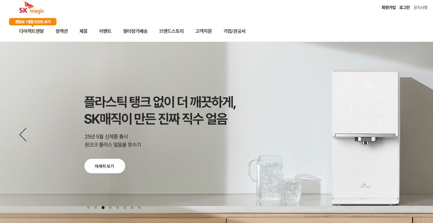SK매직 정수기, SK매직 공기청정기, SK매직 비데, SK매직 매트리스 등, 다양한 제품 전문적인 렌탈 서비스, SK매직몰에서 만나보세요.