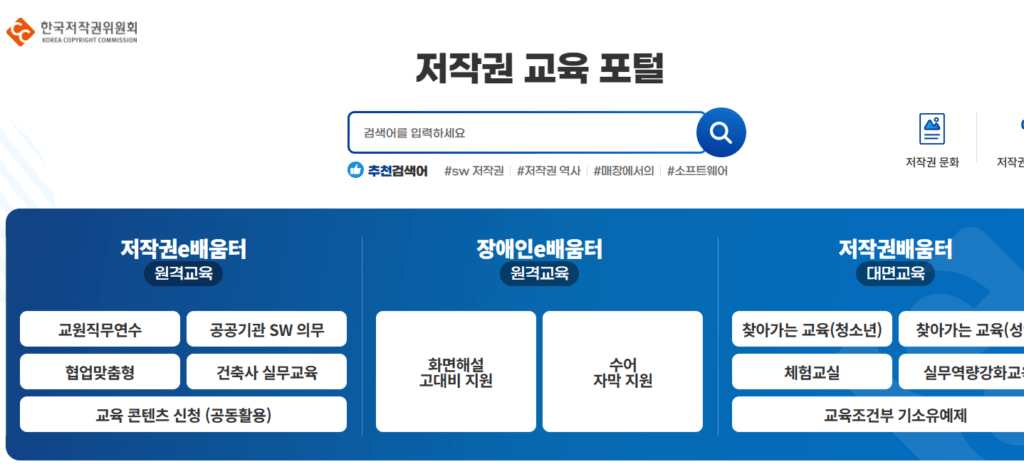 한국저작권위원회는 시각·청각장애인을 위한 전용 원격교육 시스템도 별도로 운영하고 있습니다. 장애인 맞춤형 교육 콘텐츠를 전용 시스템을 통해 제공하며, 일반 e배움터와 연계해 접근할 수 있습니다. 이는 저작권 교육의 사각지대를 해소하고 모든 국민이 동등하게 정보를 습득할 수 있도록 하기 위한 조치입니다.