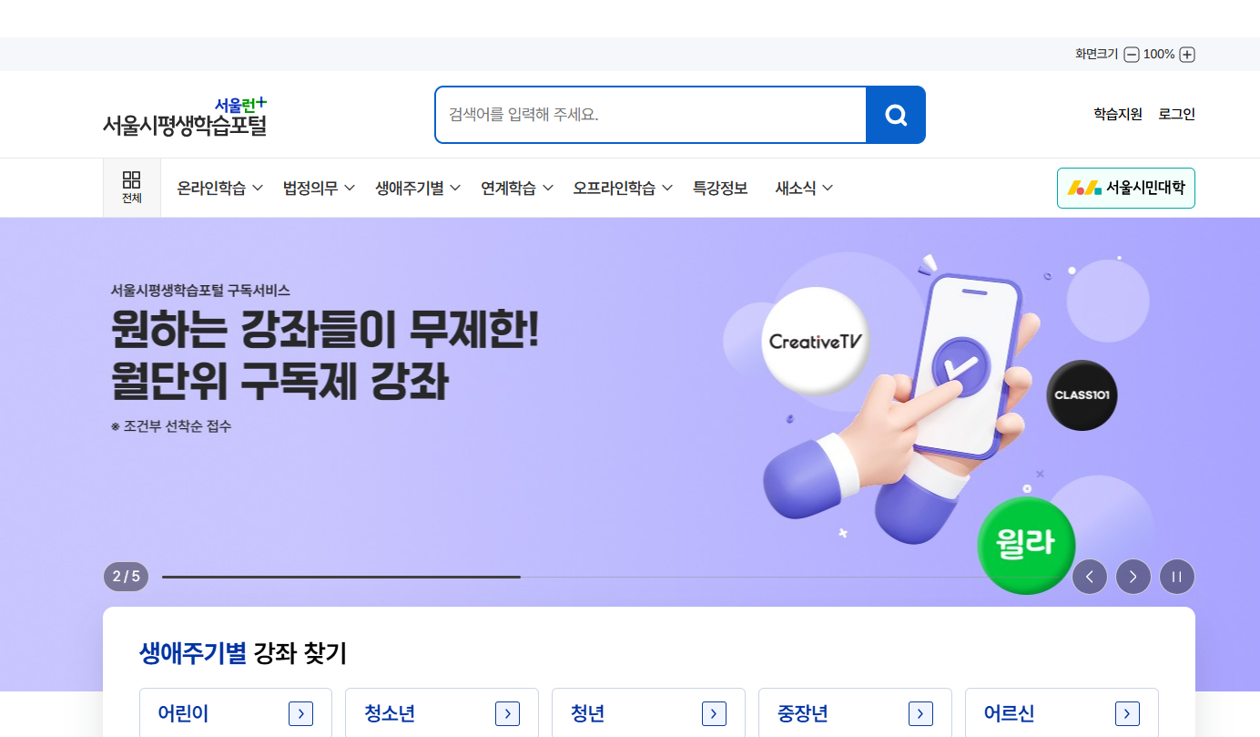 - 서울시민대학, e학습여행, 문화공연정보 등 부가 콘텐츠