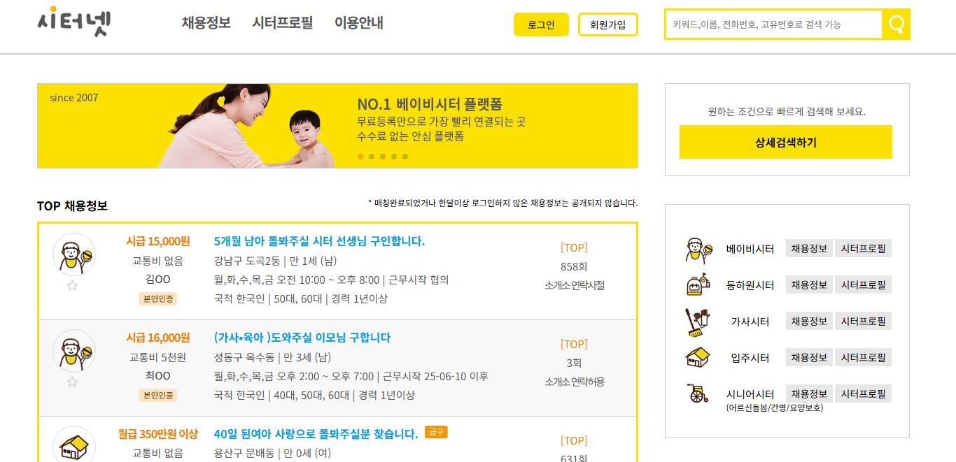 현재 시터넷 채용 동향