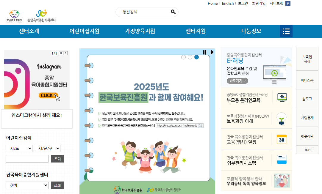 중앙육아종합지원센터 부모와 보육교직원을 위한 종합 지원 서비스